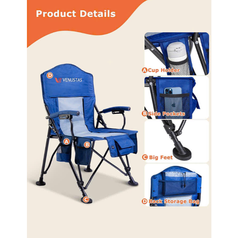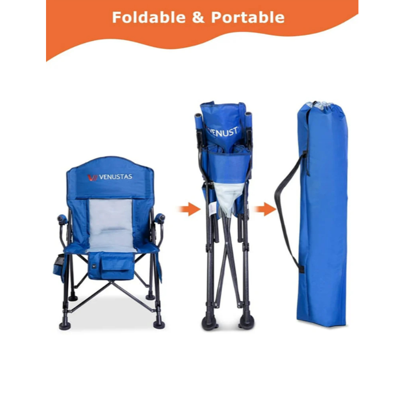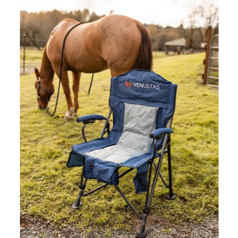 Ghế cắm trại có sưởi Venustas. Đây là một chiếc ghế gấp di động được thiết kế để sử dụng ngoài trời, có tính năng sưởi ấm tích hợp.